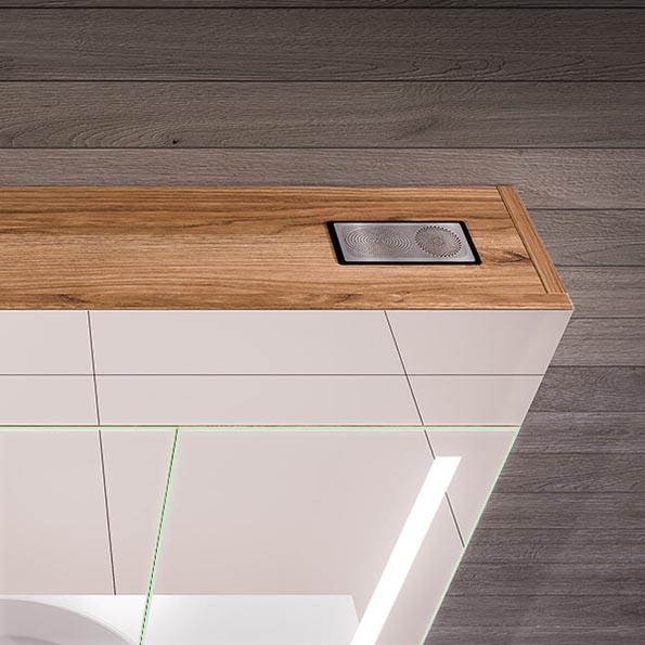 Wykorzystaj indukcję umieszczoną w środku szafki podczas porannej toalety, aby naładować swój telefon. Proces rozpocznie się, gdy położysz smartfon w miejscu do tego przeznaczonym.