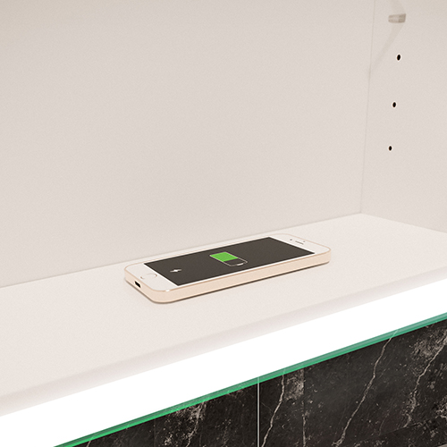 Ładuj swój telefon podczas porannej toalety! Wykorzystaj ładowarkę indukcyjną umieszczoną w środku szafki, aby zawsze naładować swój telefon. Wystarczy położyć telefon na symbolu indukcji a twój smartfon zacznie się ładować.