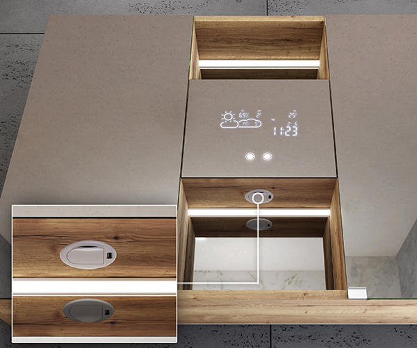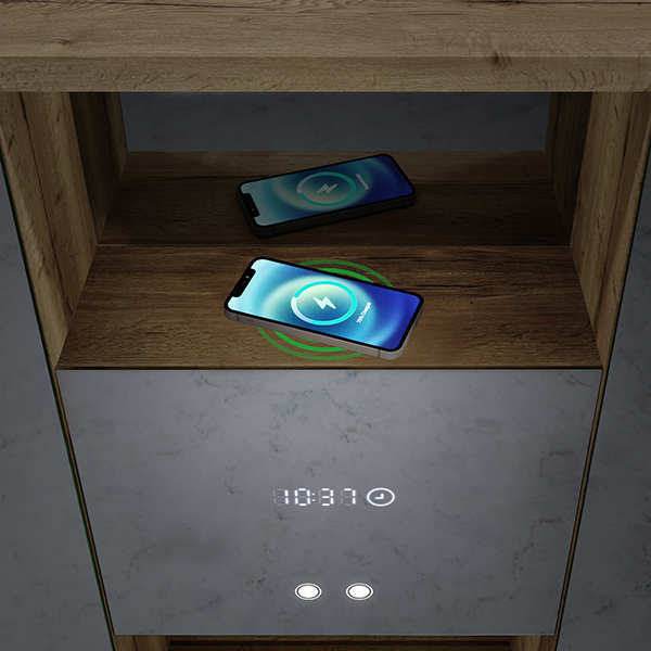 Wykorzystaj indukcję umieszczoną w środku szafki podczas porannej toalety, aby naładować swój telefon. Proces rozpocznie się, gdy położysz smartfon w miejscu do tego przeznaczonym.